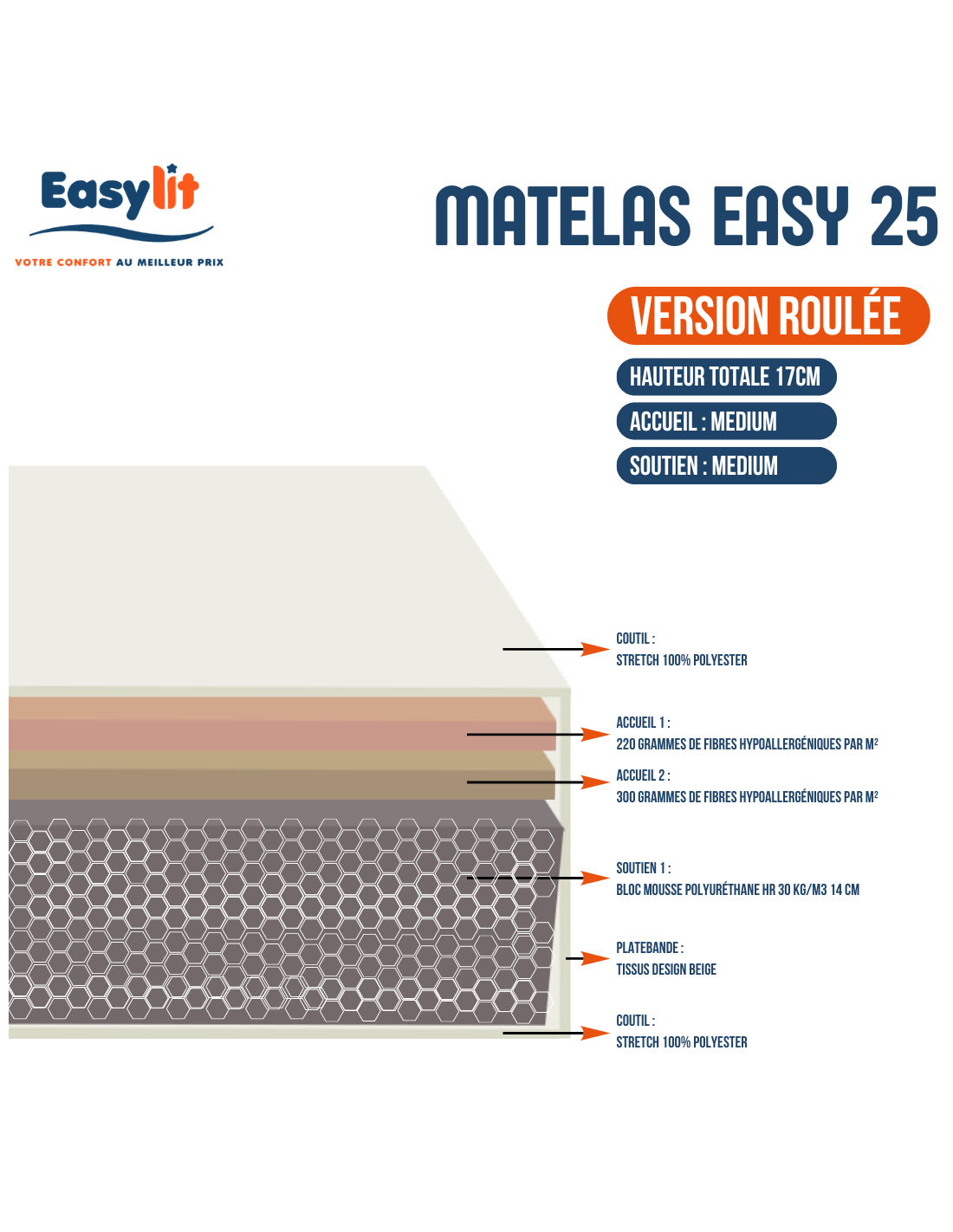 Offrez vous des nuits de sommeil confortables avec le Matelas Easy 25.