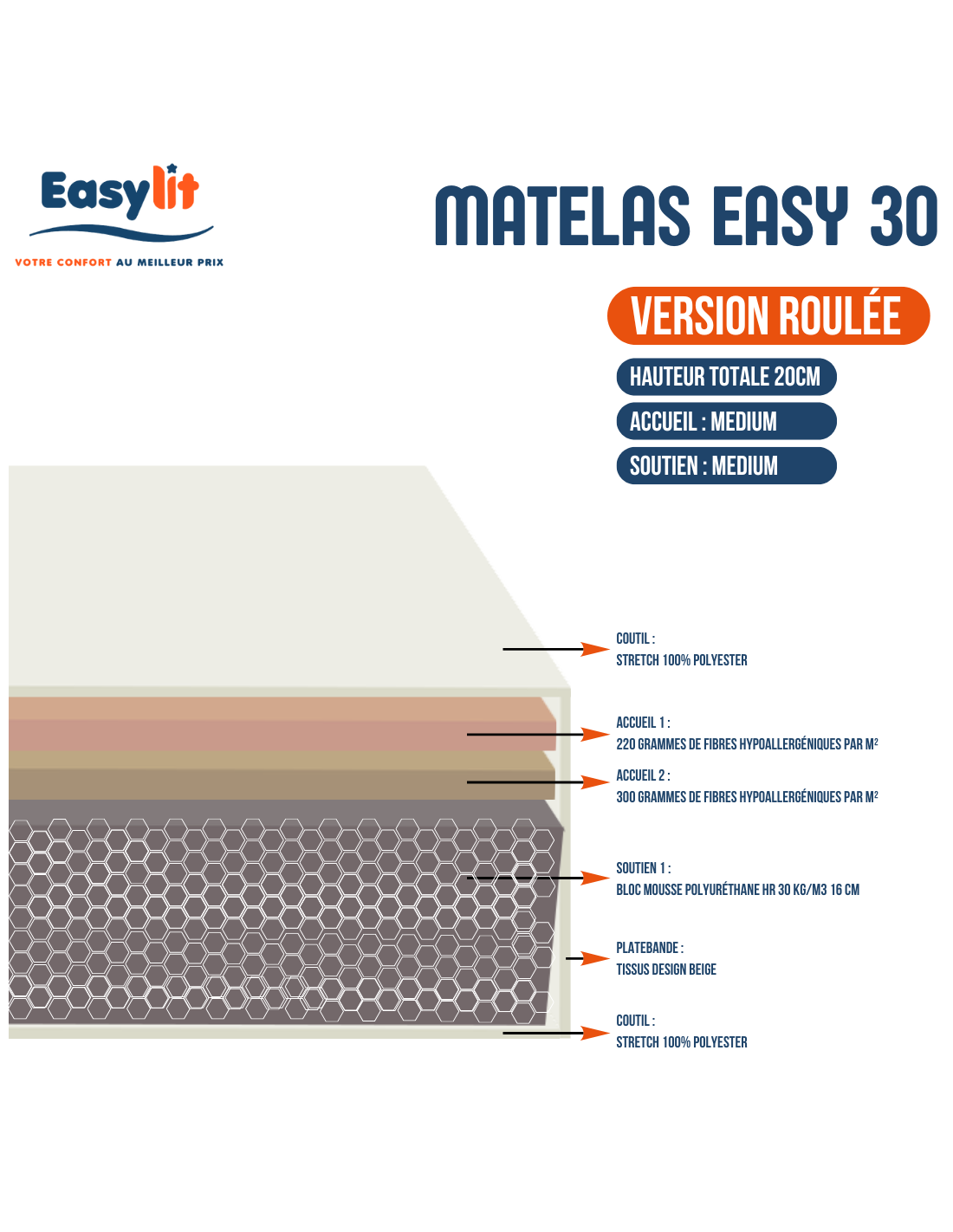 MATELAS MOUSSE L'ARTISAN DU MATELAS EASY 30