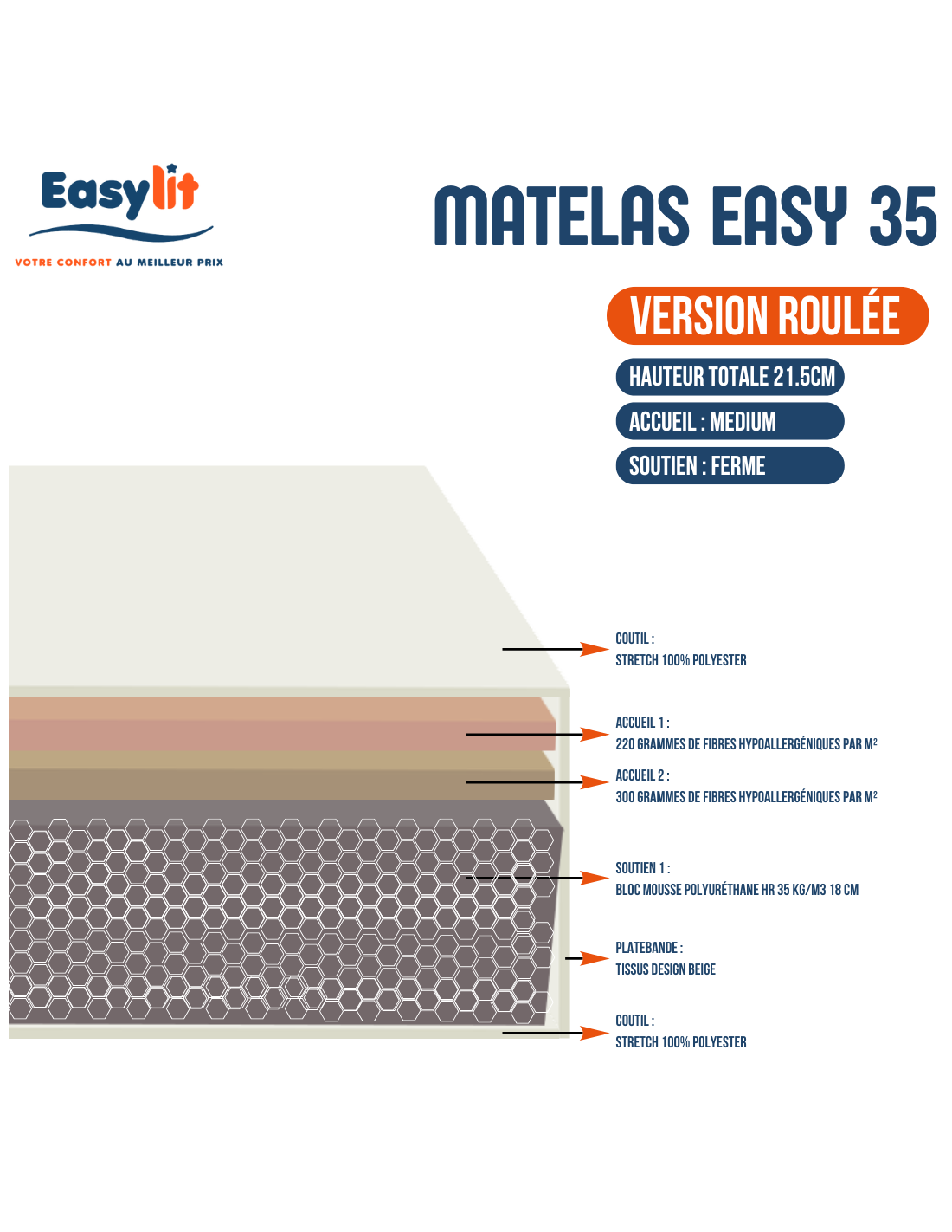 Traitement antiacarien : Le matelas Easy 35 est traité à base d’aloe vera, ce qui le rend résistant aux acariens et bénéfique pour votre bien-être.